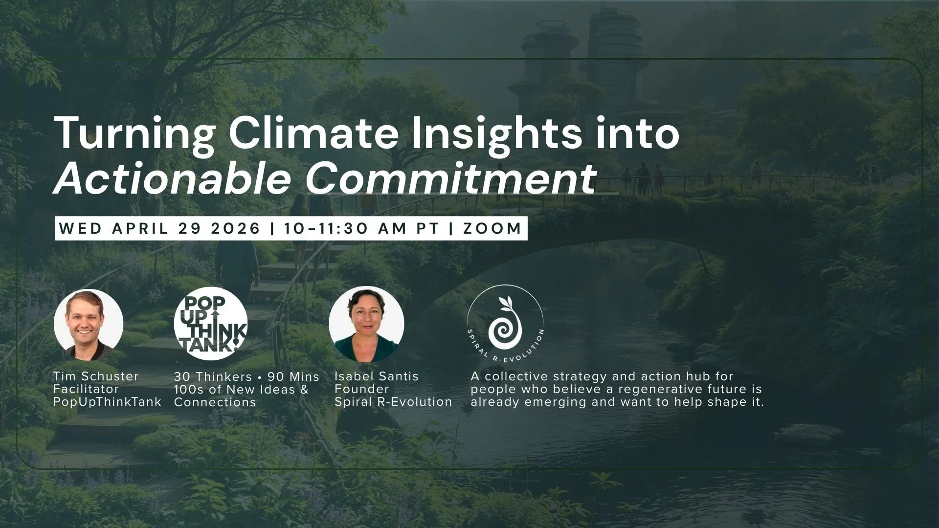 This session is for people who want to reconnect with the network that emerged, discover where initiatives are already gaining traction, and align their personal efforts with others moving a regenerative future forward.